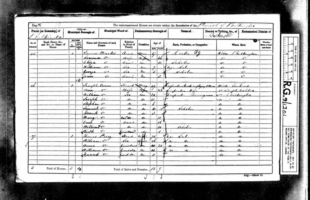 | William Marks | 9 | Sn | Bulkington | Ag Labourer |