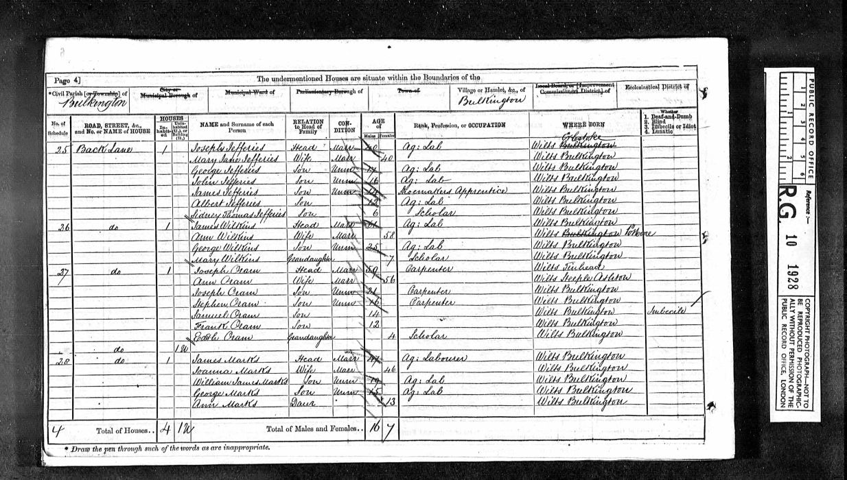 | George Marks | 15 | Sn | Bulkington | Ag Labourer |