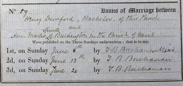 Wedding Banns for Henry and Ann Dunford - 1875: