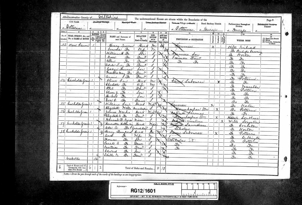 | Henry Dunford | 58 | Potterne | Farm Labourer | |
