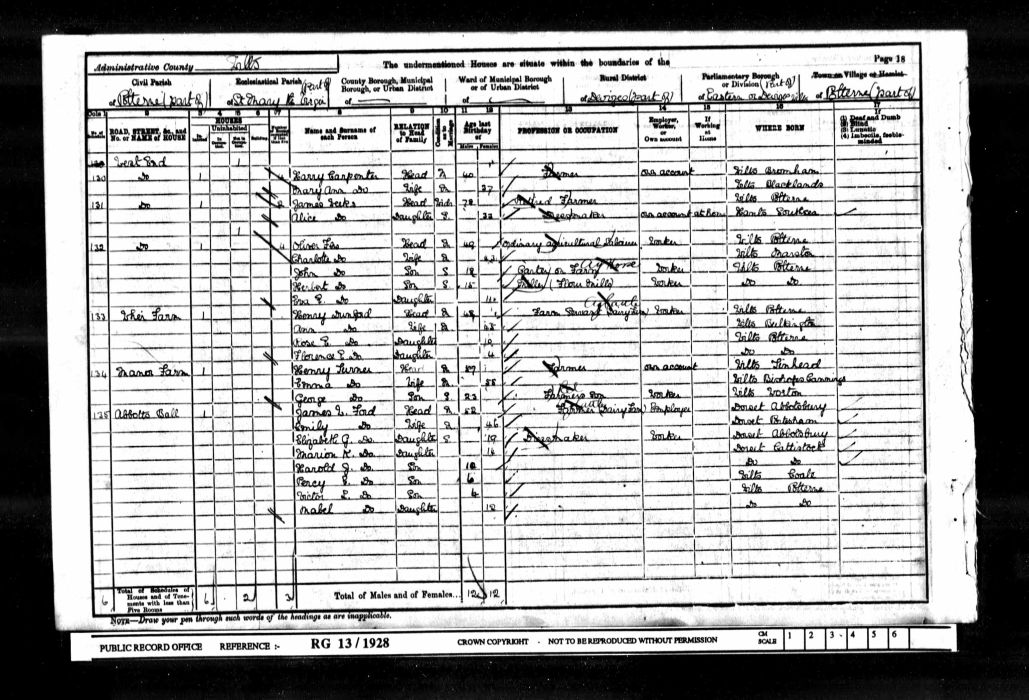 | Henry Dunford | 68 | Head | Potterne, Wiltshire | Poultry & cowman, Gen Stevenson, Worton Littlecourt |