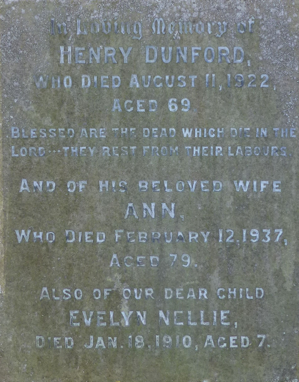 Middle row: Florence Ellen, Ann Dunford (nee Marks), Henry Dunford, Edith Rose