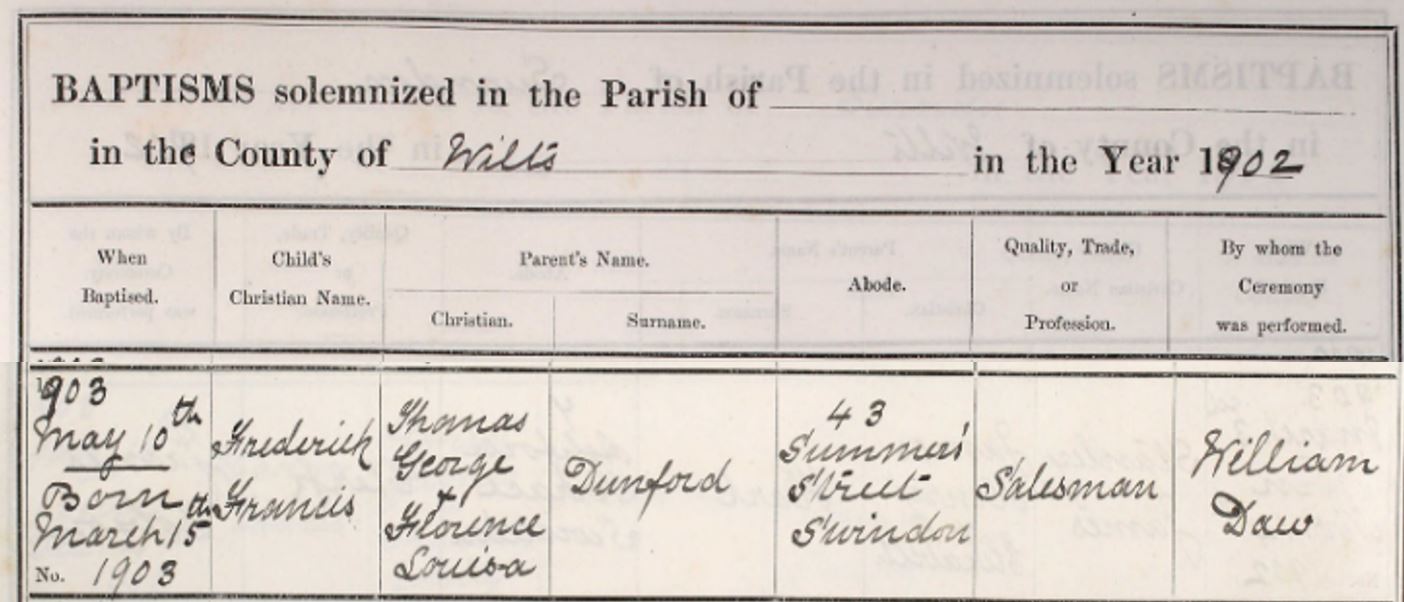 | Frederick F Dunford | 36 | Fitters Assistant, Locomotives Repair (Heavy worker) | ||