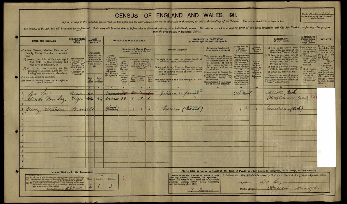 | Henry Lay | 38 | Hd | Appleton | Agricultural labourer |