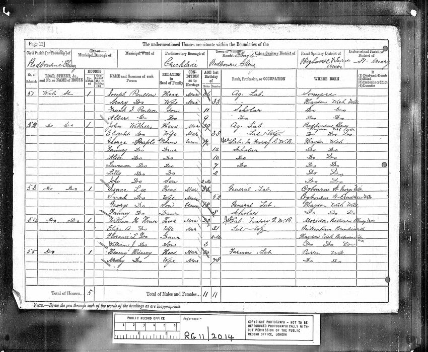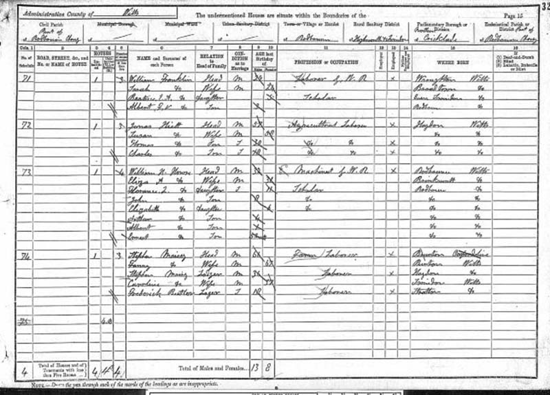 | William H. House | 22 | Hd | Moredon, R Cheney | Lab. Factory. GWR |