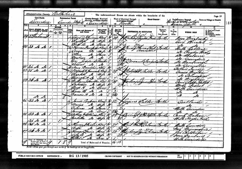 | William H Howse | 32 | Hd | Rodbourne | Machinist GWR |
