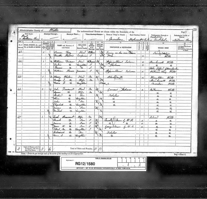 | William Dixon | 58 | Hd | Bentworth, Wilts | Agricultural Labourer |