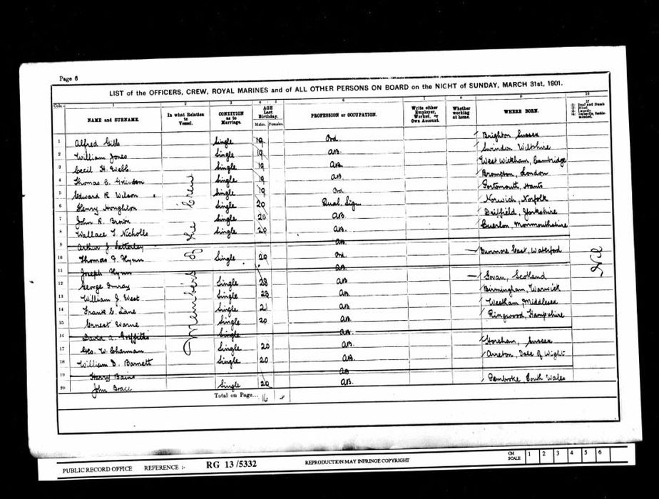 | William John West | 23 | Hd | Birmingham | Member Of Crew |